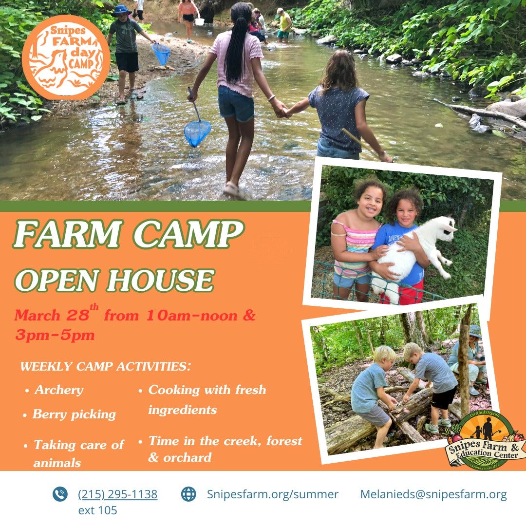 Visit Snipes Farm on Saturday, March 28 in Morrisville, PA at 10am or 3pm. For more details, please visit snipesfarm.org or call 215-295-1138.